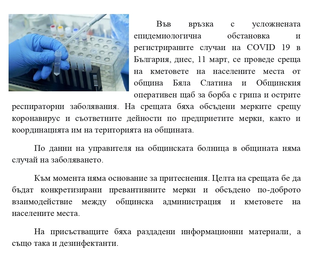Във връзка с усложнената епидемиологична обстановка и регистрираните случаи на COVID-19 в България